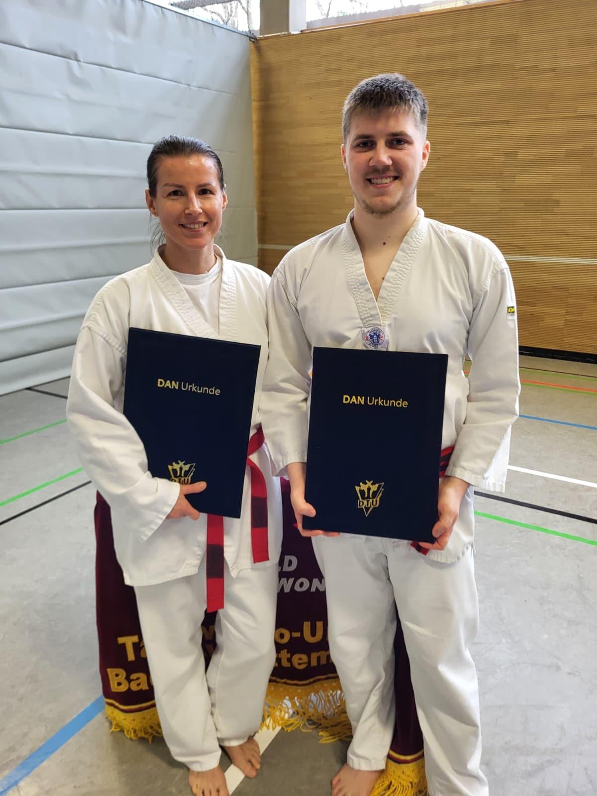 Bei der Landes-DAN-Prüfung vom 15. März 2026 in der Staufer Sporthalle in Waiblingen stellten Martina Segedyová und Moritz Moch ihr Können eindrucksvoll unter Beweis und bestanden souverän ihre Prüfungen zum 1. DAN. Ausgerichtet wurde die Veranstaltung von der Taekwondo Union Baden-Württemberg.